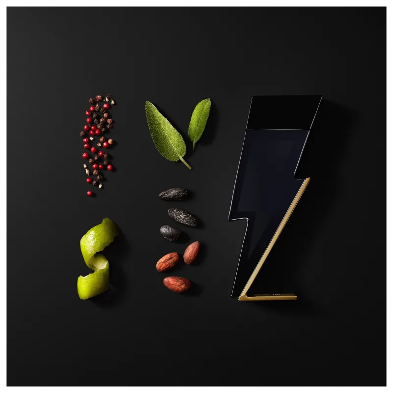 Design Icônico: o frasco em forma de raio reflete sua energia elétrica e personalidade única.