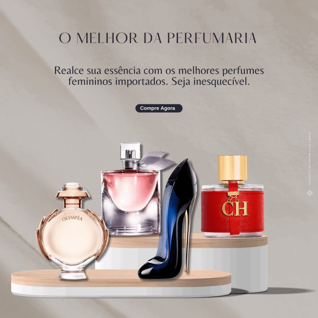 Descubra o encanto e a sofisticação dos perfumes importados femininos — fragrâncias exclusivas que unem elegância, qualidade e notas marcantes. Criados com essências refinadas e combinações únicas, eles revelam personalidade e presença em cada borrifada.