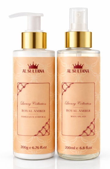 Kit Royal Amber Al Sultana Body Splash + Hidratante 200 ml | Linha Árabe